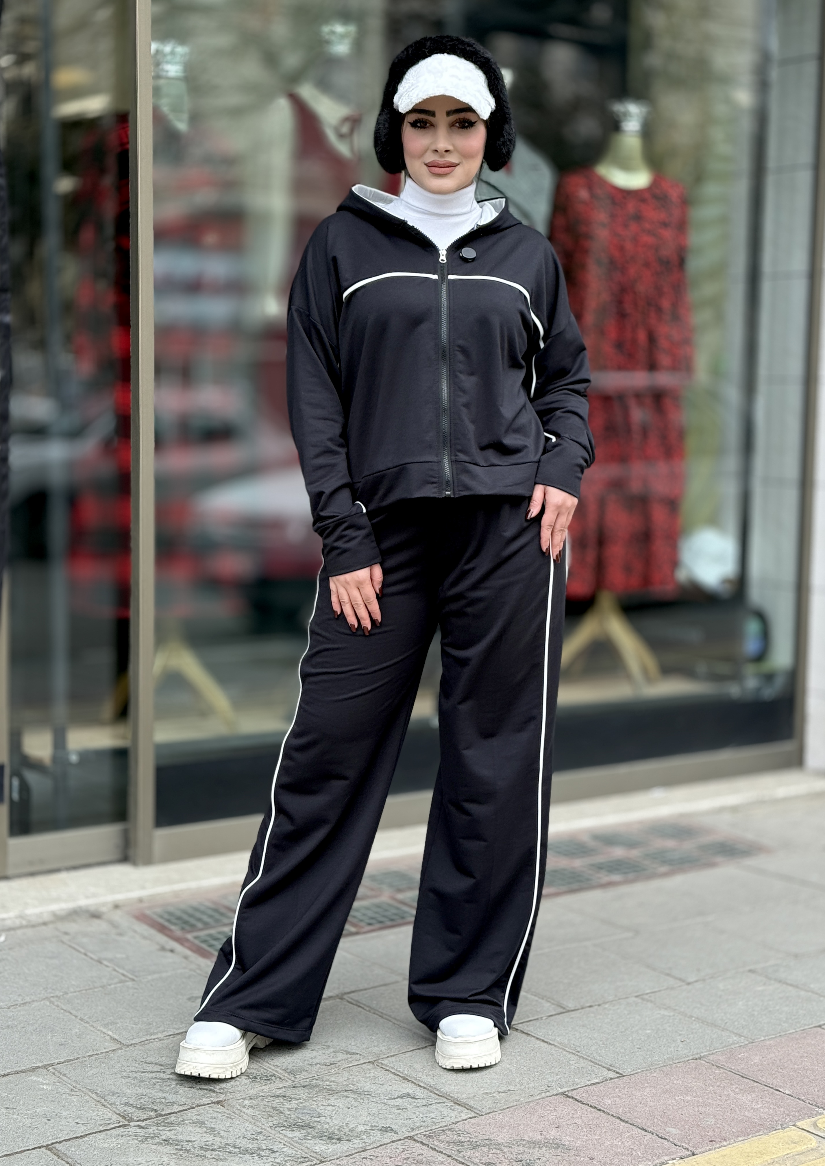ست سوشرت و شلوار مشکی نوار سفید